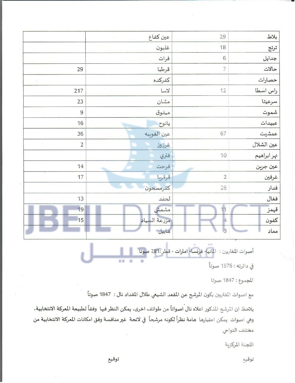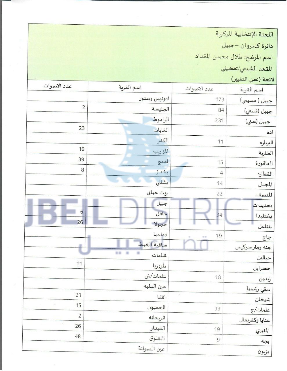 أفادت مصادر مقرّبة من المرشّح السابق عن المقعد الشيعي في جبيل طلال محسن المقداد أنه إستحصل على أرقام دقيقة وموثّقة من ماكينة أحد الأحزاب الوازنة تُظهر عدد الأصوات التي حصل عليها في الإنتخابات النيابية الأخيرة، ليؤكد من خلالها فضيحة الأرقام الناقصة في وزارة الداخلية والبلديات حسب ما أفادت المصادر.