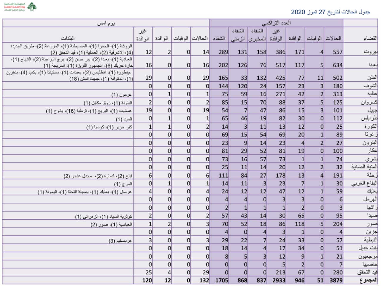 محلياتصحّةوزارة الصحة 132 اصابة جديدة صحّةوزارة الصحة 132 اصابة جديدة17:57 2020 ,July 270296 اعلنت وزارة الصحة العامة تسجيل 132 اصابة كورونا جديدة رفعت العدد التراكمي للحالات المثبتة الى 3882. FacebookTwitterPinterestWhatsAppTelegram الخبر السابقمارتينوس: لنتعاون لمواجهة كورونا وألا نتكل على الدولة، وتجهيز مركزي حجر في قرطبا.الخبر التاليماذا لو أجروا فحوص ضمائر؟!- إعلان - - إعلان - ترك الردالتعليق:من فضلك ادخل تعليقك اسم:*من فضلك ادخل اسمك هنا البريد الإلكتروني:*لقد أدخلت عنوان بريد إلكتروني غير صحيح!الرجاء إدخال عنوان بريدك الإلكتروني هنا الموقع: احفظ اسمي والبريد الإلكتروني وموقع الويب في هذا المتصفح للمرة الأولى التي أعلق فيها. - إعلانات - - إعلانات - الأكثر قراءةمأساة مؤلمة… ميشال جثّة داخل منزله! 11:38 2025 ,December 4 أوَّل معجزة تُسَجَّل بعد زيارة البابا ضريح مار شربل: رَنَّ هاتف الطبيب وصوتُ القديس يُعلِنُ الأعجوبة 15:24 2025 ,December 4 حادث مؤسف يطال النائب افرام قبيل زيارة الحبر الأعظم… فهل يشارك؟ 19:41 2025 ,November 29 جريمة مروّعة نفّذها سوريّان… ودعوات لضبط النفس 12:02 2025 ,December 4 المزيد- إعلانات - - إعلانات - - إعلان - - إعلان -