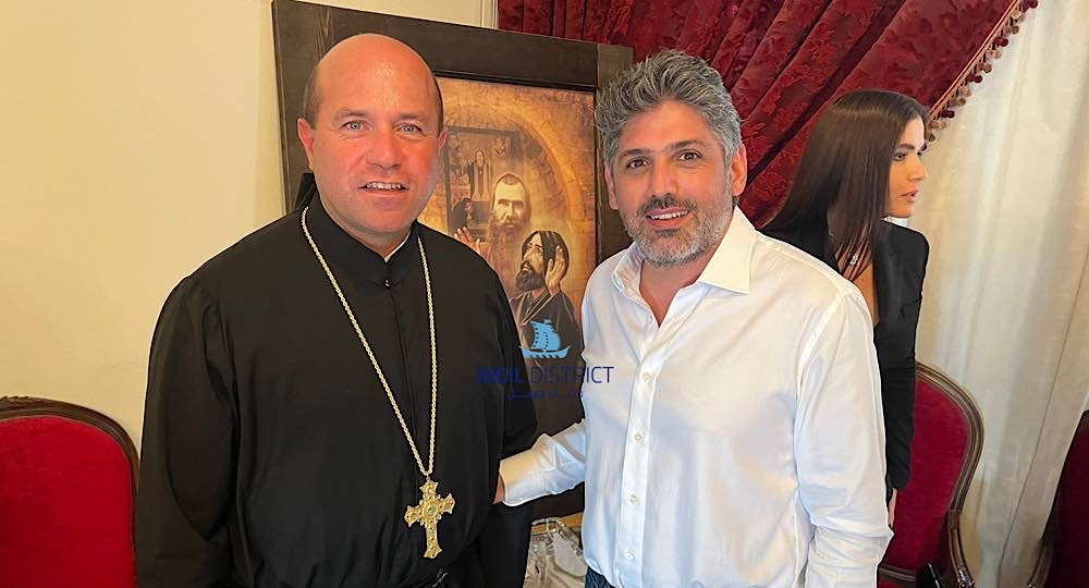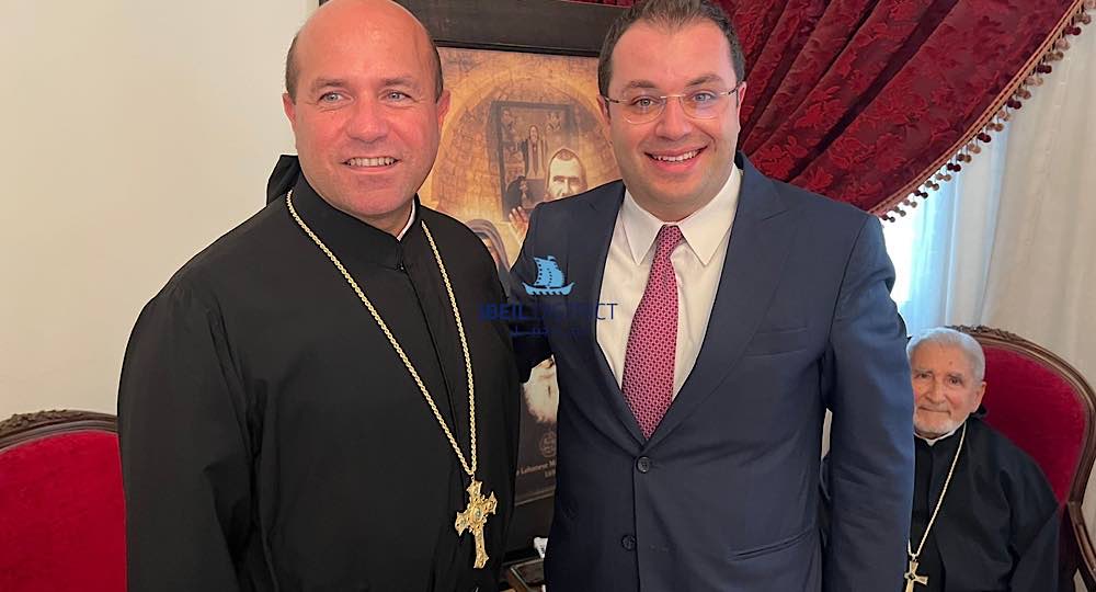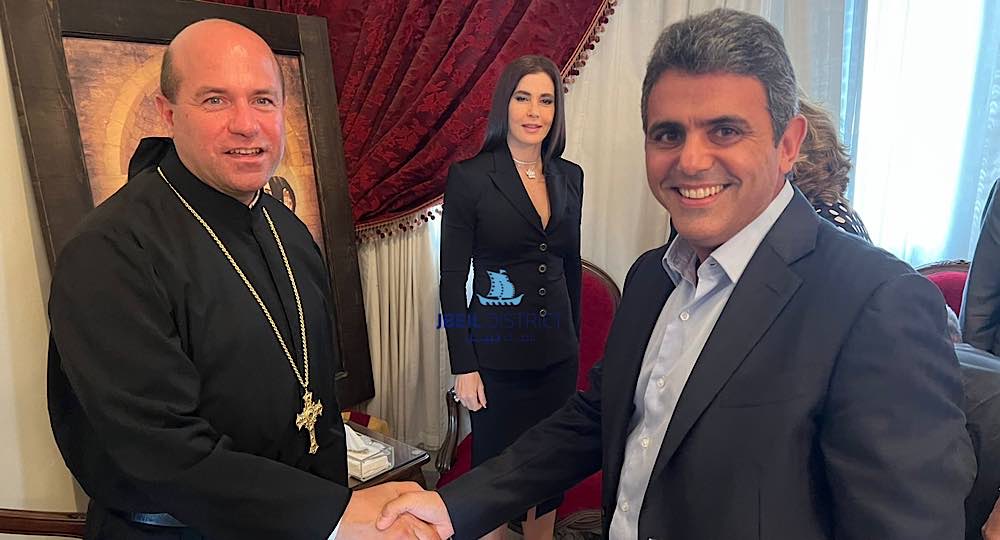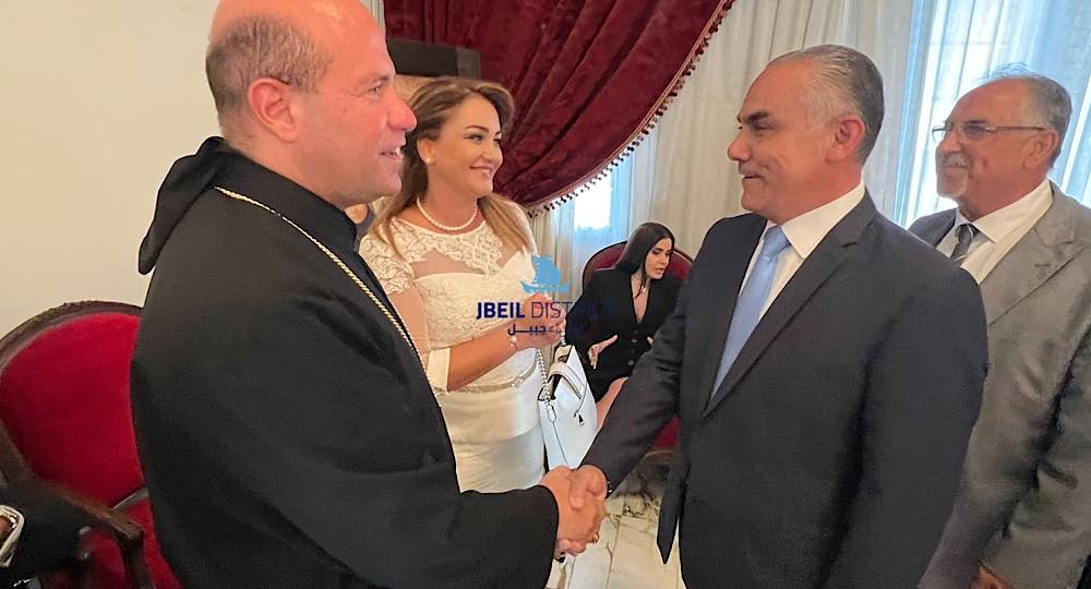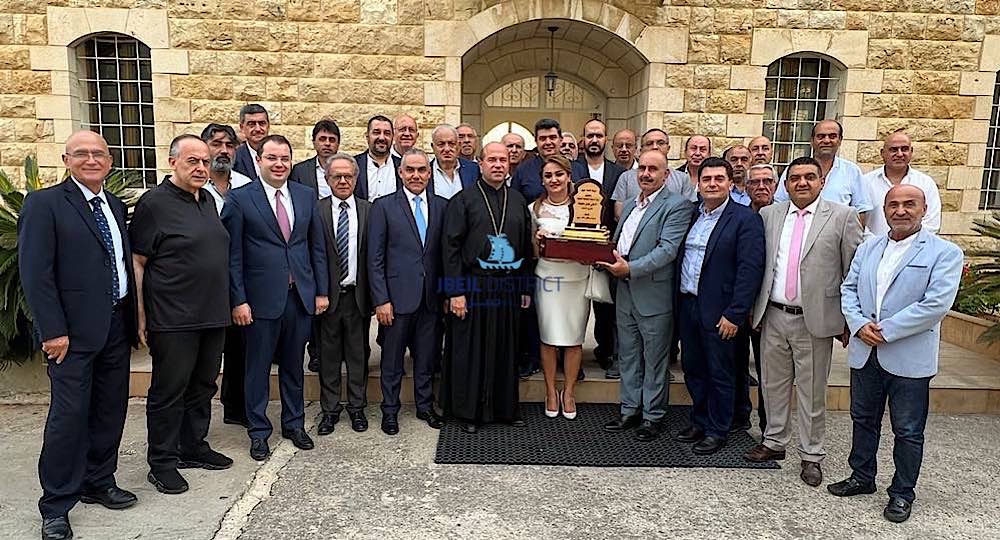 كما تضمن الوفد عدد من رؤساء بلديات جبيلية حيث قدّم رئيس بلدية بلاط ومستيتا وقرطبون عبدو العتيق درعا تقديرية لقدس الاباتي.