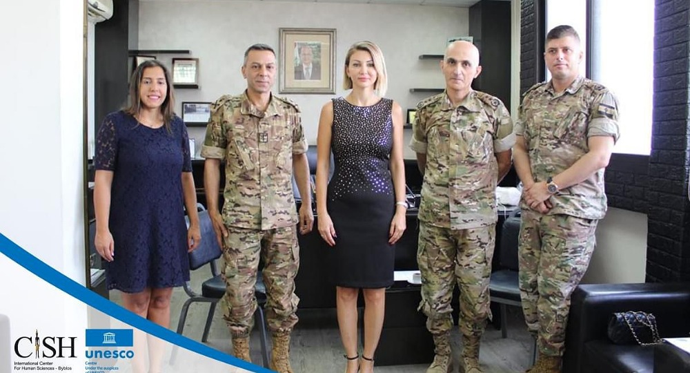 ضمن إطار التعاون القائم بين المركز الدولي لعلوم الانسان اليونسكو بيبلوس ومركز البحوث والدراسات الاستراتيجية في الجيش اللبناني وتحديداً في المؤتمر الذي سيعقد يومي الخميس والجمعة ١١ و١٢ آب الجاري حول الأمن البشري من كافة جوانبه، قامت مديرة المركز د. دارينا صليبا أبي شديد ترافقها مسؤولة البرامج الآنسة فانيسا صفير بزيارة الى مركز البحوث حيث عقد إجتماعاً ضمّ بالإضافة الى الزوار كلّ من رئيس المركز العميد الركن باسم أحمدية والعقيد بيار بو عساف والرائد باسل الحجار حيث تمّ إطلاع الجانبين على كافة التفاصيل المحيطة بالمؤتمر .