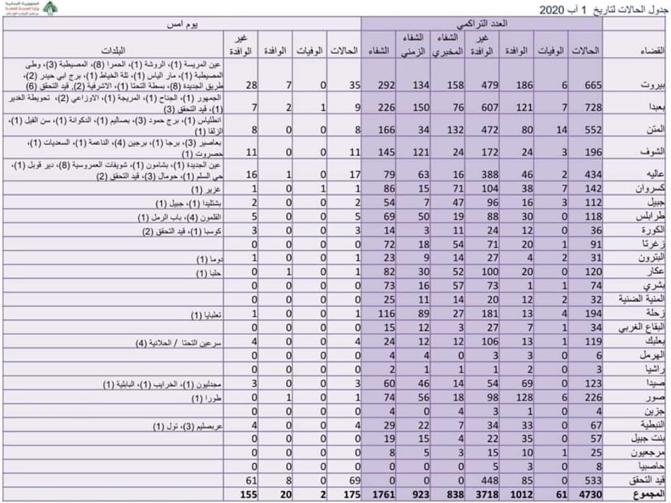 محلياتصحّةحالتا وفاة و175 إصابة جديدة بكورونا في لبنان صحّةحالتا وفاة و175 إصابة جديدة بكورونا في لبنان19:23 2020 ,August 10304 اعلنت وزارة الصحة العامة تسجيل 175 إصابة كورونا جديدة رفعت عدد الحالات المثبتة الى 4730 FacebookTwitterPinterestWhatsAppTelegram الخبر السابقاصابة جديدة بكورونا في حصاراتالخبر التاليالحواط : تواصلت مع وزير الصحة وطالبته بإرسال فريق من الوزارة لاجراء فحوصات ال PCR في حصارات- إعلان - - إعلان - ترك الردالتعليق:من فضلك ادخل تعليقك اسم:*من فضلك ادخل اسمك هنا البريد الإلكتروني:*لقد أدخلت عنوان بريد إلكتروني غير صحيح!الرجاء إدخال عنوان بريدك الإلكتروني هنا الموقع: احفظ اسمي والبريد الإلكتروني وموقع الويب في هذا المتصفح للمرة الأولى التي أعلق فيها. - إعلانات - - إعلانات - الأكثر قراءةمأساة مؤلمة… ميشال جثّة داخل منزله! 11:38 2025 ,December 4 أوَّل معجزة تُسَجَّل بعد زيارة البابا ضريح مار شربل: رَنَّ هاتف الطبيب وصوتُ القديس يُعلِنُ الأعجوبة 15:24 2025 ,December 4 حادث مؤسف يطال النائب افرام قبيل زيارة الحبر الأعظم… فهل يشارك؟ 19:41 2025 ,November 29 جريمة مروّعة نفّذها سوريّان… ودعوات لضبط النفس 12:02 2025 ,December 4 المزيد- إعلانات - - إعلانات - - إعلان - - إعلان -