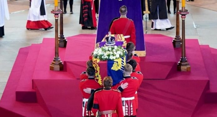 ووضع نعش الملكة في قاعة وستمنستر منذ يوم الأربعاء، بعد أن تم إحضاره من قصر باكنغهام، للسماح للناس بالحضور وإلقاء نظرات الوداع على الملكة الراحلة.