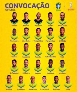 وبقيادة نيمار ونجمي ريال مدريد الإسباني فينيسيوس جونيور ورودريغو ضمن فريق يضم 16 لاعباً لم يسبق لهم المشاركة في العرس الكروي العالمي وثلاثة مدافعين من جوفنتوس الإيطالي هم بريمر ودانيلو وأليكس ساندرو، تبدأ البرازيل مشوارها في المونديال القطري في 24 الشهر الحالي ضد صربيا ضمن منافسات المجموعة السابعة التي تضم سويسرا والكاميرون.