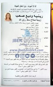 يحتفل بالصلاة لراحة نفسها السبت ١٩ تشرين الثاني في كنيسة مار يوسف – زندوقة.