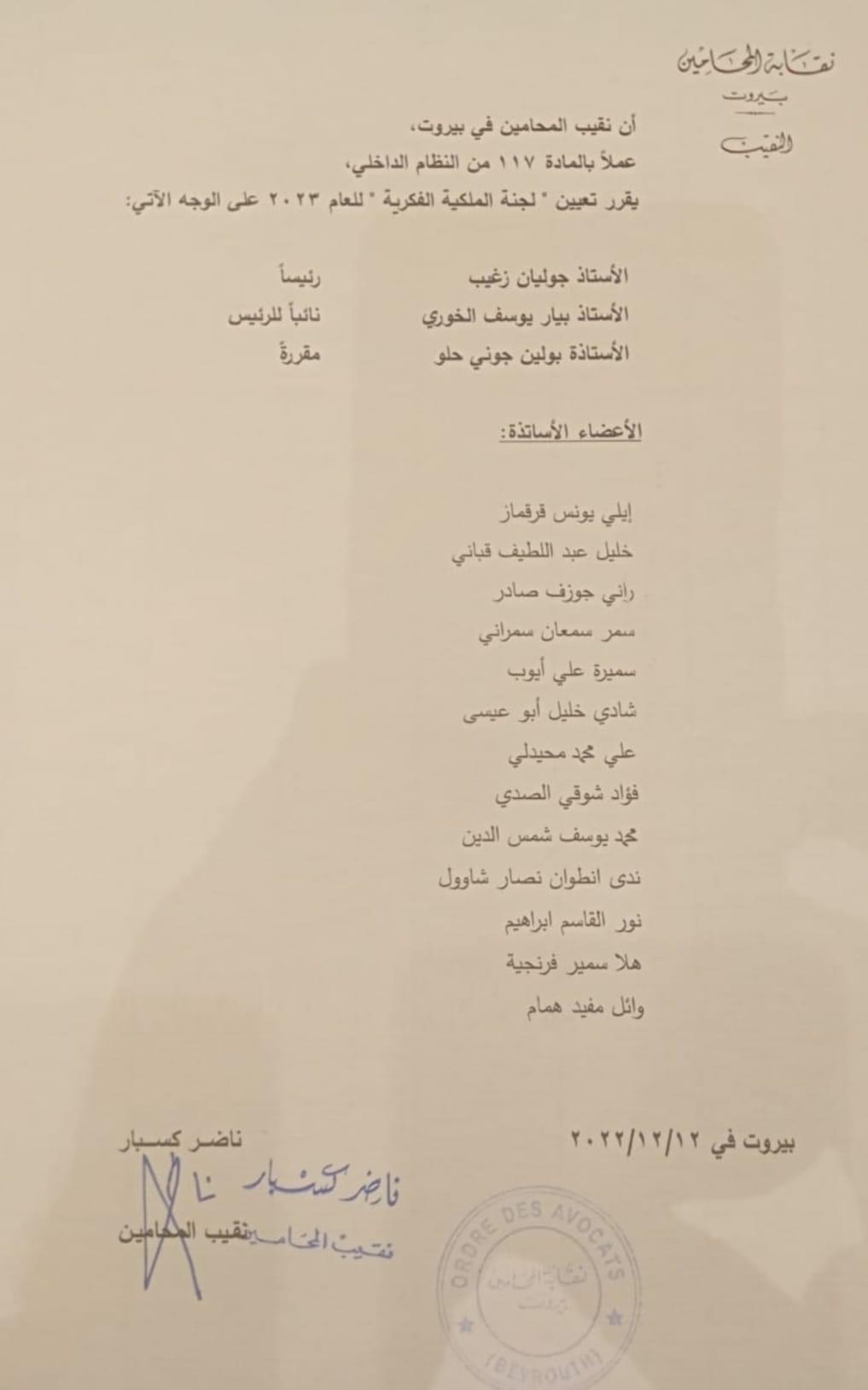 للجنة الملكية الفكرية للعام ۲۰۲۳ عملاً بالمادة ١١٧ من النظام الداخلي.