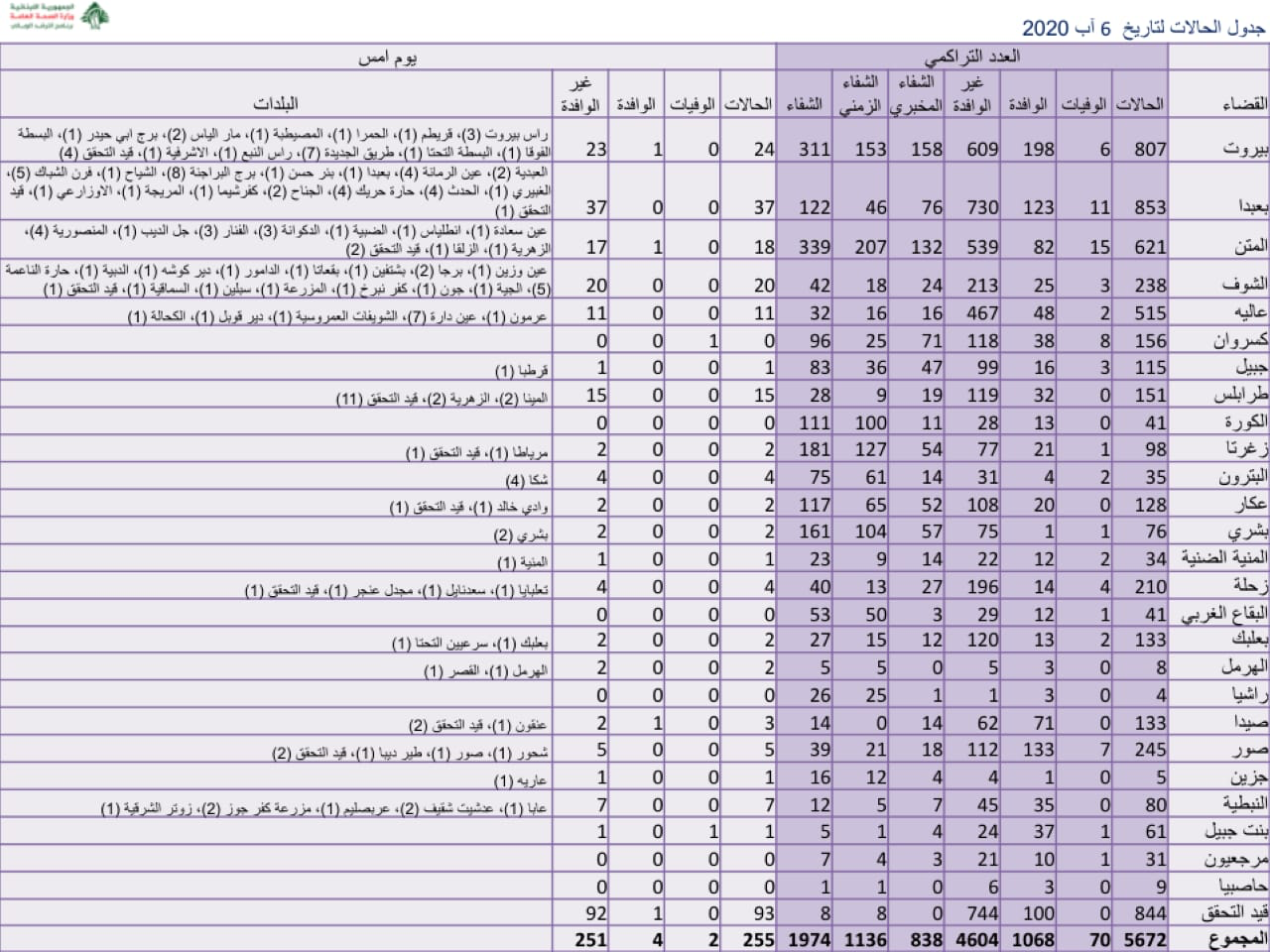 أبرز العناوينفي لبنان.. 255 إصابة جديدة وحالتا وفاة صحّةفي لبنان.. 255 إصابة جديدة وحالتا وفاة18:54 2020 ,August 60354 اعلنت وزارة الصحة العامة تسجيل 255 إصابة كورونا جديدة رفعت العدد التراكمي للحالات المثبتة الى 5672. FacebookTwitterPinterestWhatsAppTelegram الخبر السابقجعجع: السلطة في موقع الاتهام… نطالب بلجنة تقصي حقائق دوليةالخبر التاليقرار من هيئة التحقيق الخاصة في “المركزي”.. تجميد حسابات ورفع السرية المصرفية عن هؤلاء الاشخاص- إعلان - - إعلان - ترك الردالتعليق:من فضلك ادخل تعليقك اسم:*من فضلك ادخل اسمك هنا البريد الإلكتروني:*لقد أدخلت عنوان بريد إلكتروني غير صحيح!الرجاء إدخال عنوان بريدك الإلكتروني هنا الموقع: احفظ اسمي والبريد الإلكتروني وموقع الويب في هذا المتصفح للمرة الأولى التي أعلق فيها. - إعلانات - - إعلانات - الأكثر قراءةمأساة مؤلمة… ميشال جثّة داخل منزله! 11:38 2025 ,December 4 أوَّل معجزة تُسَجَّل بعد زيارة البابا ضريح مار شربل: رَنَّ هاتف الطبيب وصوتُ القديس يُعلِنُ الأعجوبة 15:24 2025 ,December 4 حادث مؤسف يطال النائب افرام قبيل زيارة الحبر الأعظم… فهل يشارك؟ 19:41 2025 ,November 29 جريمة مروّعة نفّذها سوريّان… ودعوات لضبط النفس 12:02 2025 ,December 4 المزيد- إعلانات - - إعلانات - - إعلان - - إعلان -