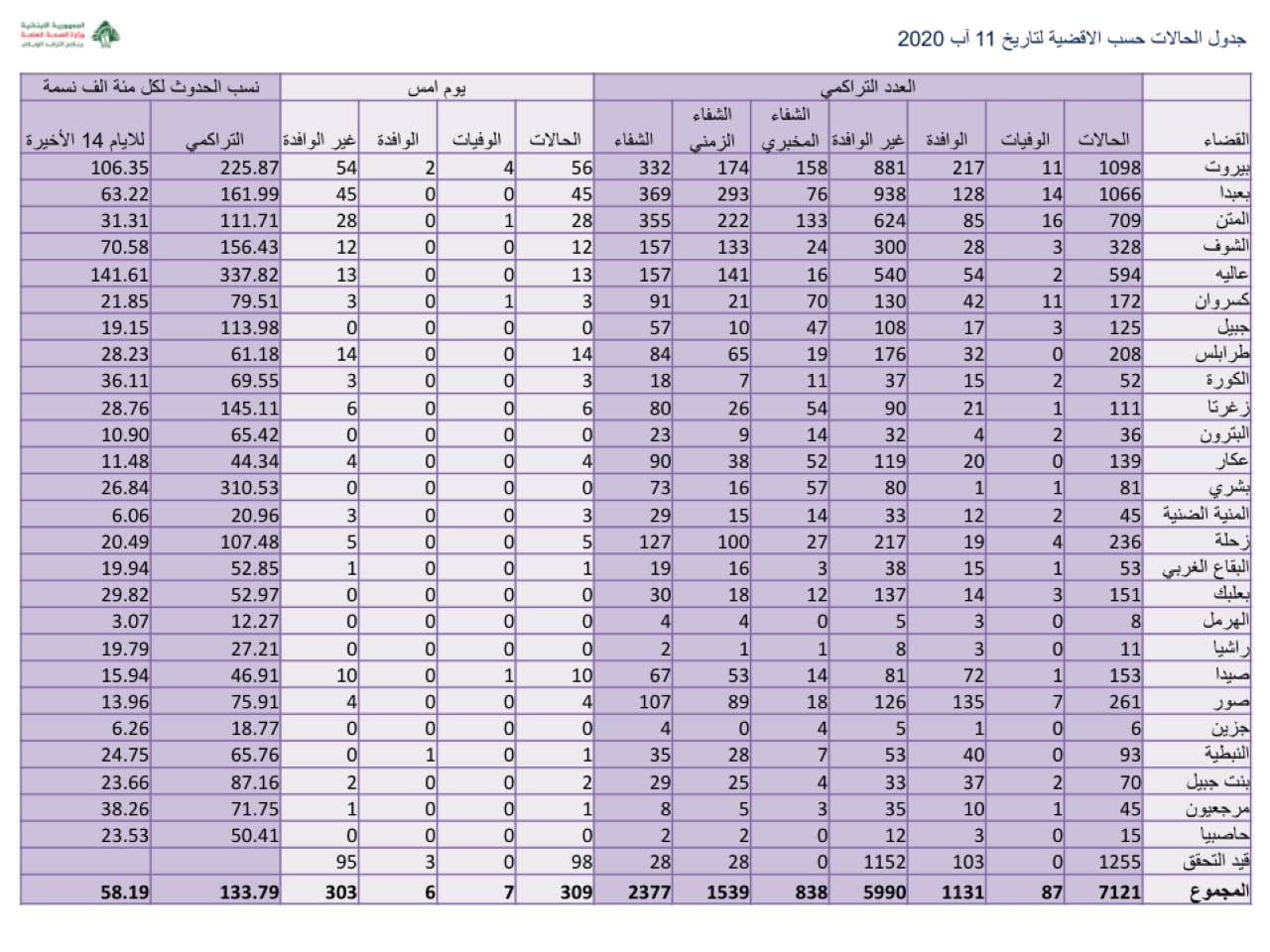 محلياتصحّةوزارة الصحة: 309 إصابات جديدة و 7 حالات وفاة صحّةوزارة الصحة: 309 إصابات جديدة و 7 حالات وفاة19:54 2020 ,August 110504 اعلنت وزارة الصحة العامة تسجيل 309 إصابة كورونا جديدة رفعت العدد التراكمي للحالات المثبتة الى 7121. FacebookTwitterPinterestWhatsAppTelegram الخبر السابقبلدة حصارات تشكر قائمقام جبيل على متابعتها فحوص ال pcr في البلدةالخبر التاليخليل مرداس السماسرة يسرقون ابناء بيروت- إعلان - - إعلان - ترك الردالتعليق:من فضلك ادخل تعليقك اسم:*من فضلك ادخل اسمك هنا البريد الإلكتروني:*لقد أدخلت عنوان بريد إلكتروني غير صحيح!الرجاء إدخال عنوان بريدك الإلكتروني هنا الموقع: احفظ اسمي والبريد الإلكتروني وموقع الويب في هذا المتصفح للمرة الأولى التي أعلق فيها. - إعلانات - - إعلانات - الأكثر قراءةمأساة مؤلمة… ميشال جثّة داخل منزله! 11:38 2025 ,December 4 أوَّل معجزة تُسَجَّل بعد زيارة البابا ضريح مار شربل: رَنَّ هاتف الطبيب وصوتُ القديس يُعلِنُ الأعجوبة 15:24 2025 ,December 4 حادث مؤسف يطال النائب افرام قبيل زيارة الحبر الأعظم… فهل يشارك؟ 19:41 2025 ,November 29 جريمة مروّعة نفّذها سوريّان… ودعوات لضبط النفس 12:02 2025 ,December 4 المزيد- إعلانات - - إعلانات - - إعلان - - إعلان -
