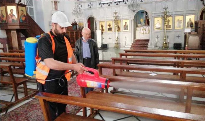 – تعقيم الكنائس، وعدم استعمال الكتب وتناقلها بين أيدي المؤمنين.