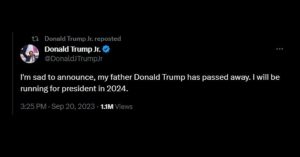 “حزين لإعلان وفاة والدي دونالد #ترامب، وسأقوم بالترشح لانتخابات الرئاسة في 2024”