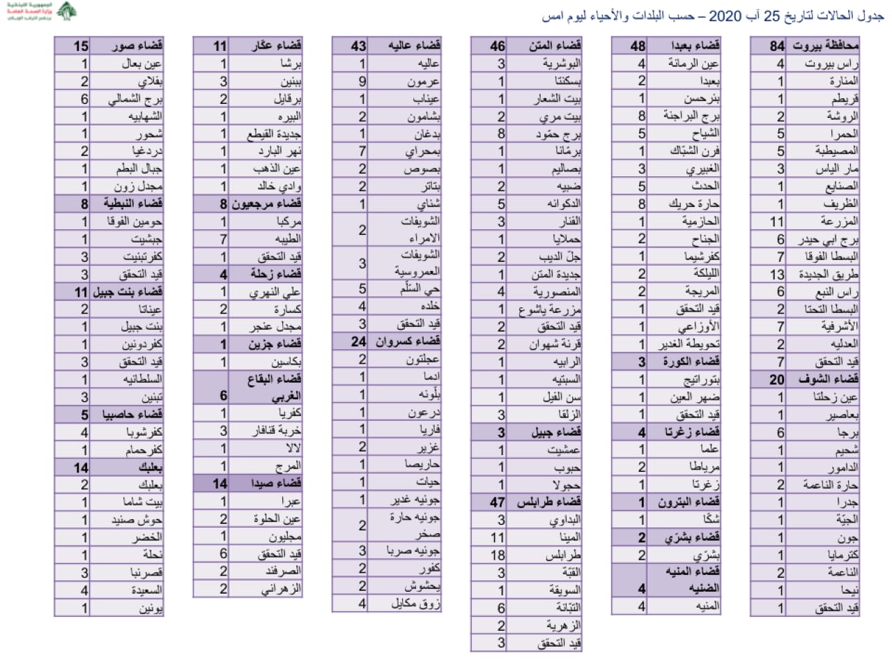 محلياتصحّةوزارة الصحة : ١٢ حالة وفاة و ٥٣٢ اصابة جديدة بفيروس... صحّةوزارة الصحة : ١٢ حالة وفاة و ٥٣٢ اصابة جديدة بفيروس كورونا19:32 2020 ,August 250379 اعلنت وزارة الصحة العامة تسجيل ٥٣٢ اصابة كورونا جديدة رفعت العدد التراكمي للحالات المثبتة الى ١٣٦٨٧ FacebookTwitterPinterestWhatsAppTelegram الخبر السابقتحذير من مخاطر فتح القطاعات الاقتصادية عشوائياًالخبر التاليالحواط: “ضبوا عنترياتكم عن المؤسسات السياحية المنكوبة”- إعلان - - إعلان - ترك الردالتعليق:من فضلك ادخل تعليقك اسم:*من فضلك ادخل اسمك هنا البريد الإلكتروني:*لقد أدخلت عنوان بريد إلكتروني غير صحيح!الرجاء إدخال عنوان بريدك الإلكتروني هنا الموقع: احفظ اسمي والبريد الإلكتروني وموقع الويب في هذا المتصفح للمرة الأولى التي أعلق فيها. - إعلانات - - إعلانات - الأكثر قراءةمأساة مؤلمة… ميشال جثّة داخل منزله! 11:38 2025 ,December 4 أوَّل معجزة تُسَجَّل بعد زيارة البابا ضريح مار شربل: رَنَّ هاتف الطبيب وصوتُ القديس يُعلِنُ الأعجوبة 15:24 2025 ,December 4 جريمة مروّعة نفّذها سوريّان… ودعوات لضبط النفس 12:02 2025 ,December 4 خاص-منشور للزميل عبدو متى يثير الجدل حول حضور سليم صفير لقاء الشبيبة في بكركي! 23:24 2025 ,December 1 المزيد- إعلانات - - إعلانات - - إعلان - - إعلان -