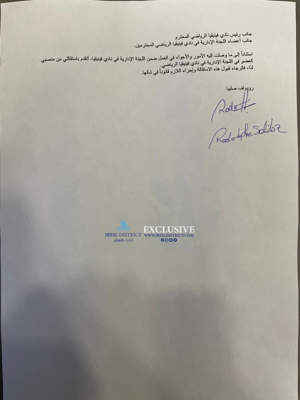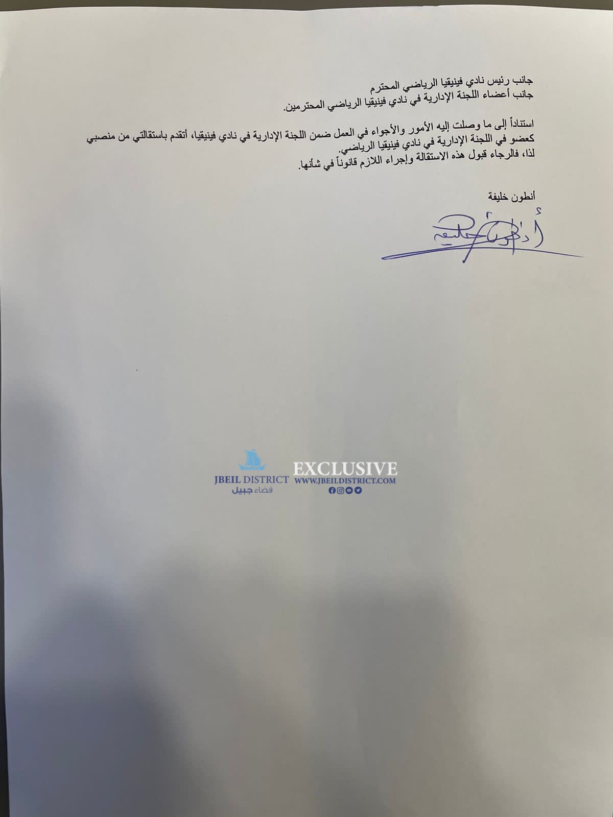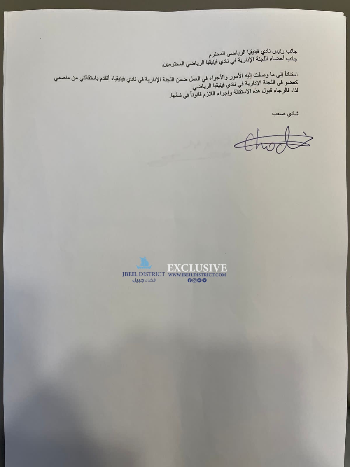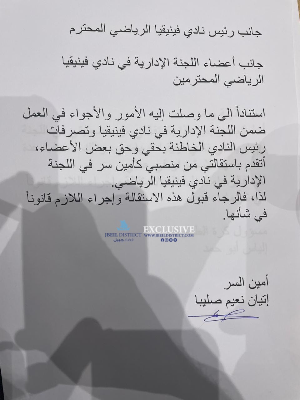 علم موقع”قضاء جبيل ” ان ستة أعضاء من اللجنة الإدارية لنادي فينيقيا الرياضي في جبيل تقدموا بإستقالاتهم من أصل عشرة بعد استيائهم من تصرفات وقرارات رئيس النادي ألكسندر أبي يونس بذلك تصبح اللجنة بحكم المستقيلة