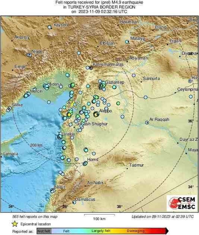 ضربت هزة أرضية قوية فجر اليوم الخميس شمال سوريا بلغت قوتها 4.9 على مقياس ريختر ومصدرها لواء أسكندورن، وشعر بها سكان الساحل السوري بوضوح.