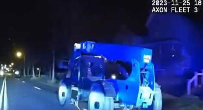ونشرت الشرطة مقطع فيديو يظهر ملاحقة الشاحنة، بينما كان الضابط يحث الصبي على “التوقف الآن”، ويحذر زميله من التوقف أمامه.