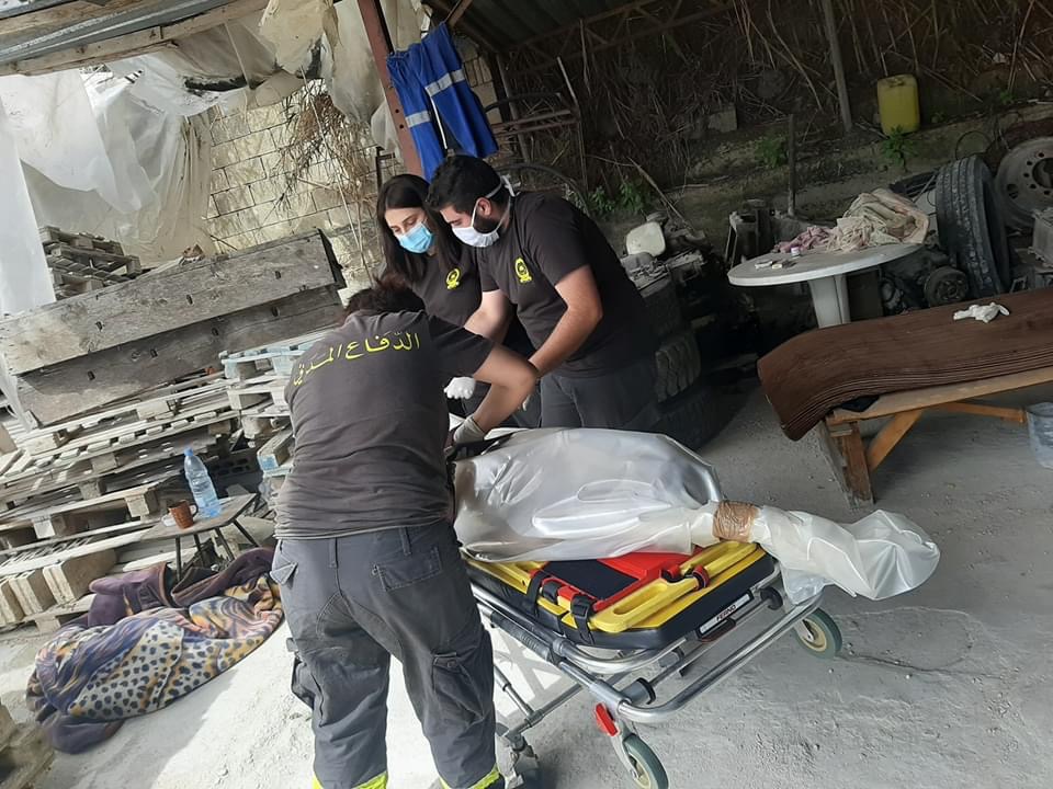 نقل عناصر من الدفاع المدني في تمام الساعة ١٥:٢٥ من تاريخ اليوم الواقع في ٢٦\٥\٢٠٢٠ جثة عامل من التابعية الهندية من عمشيت -جبيل . الى مستشفى طرابلس الحكومي.