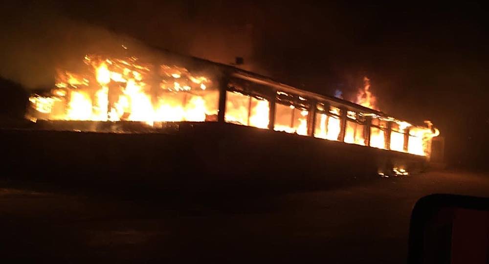 شب عند الثالثة فجرا حريقًا كبيرًا في مطعم المنتزه – عنايا قرب دير مار مارون عنايا ضريح القديس شربل .