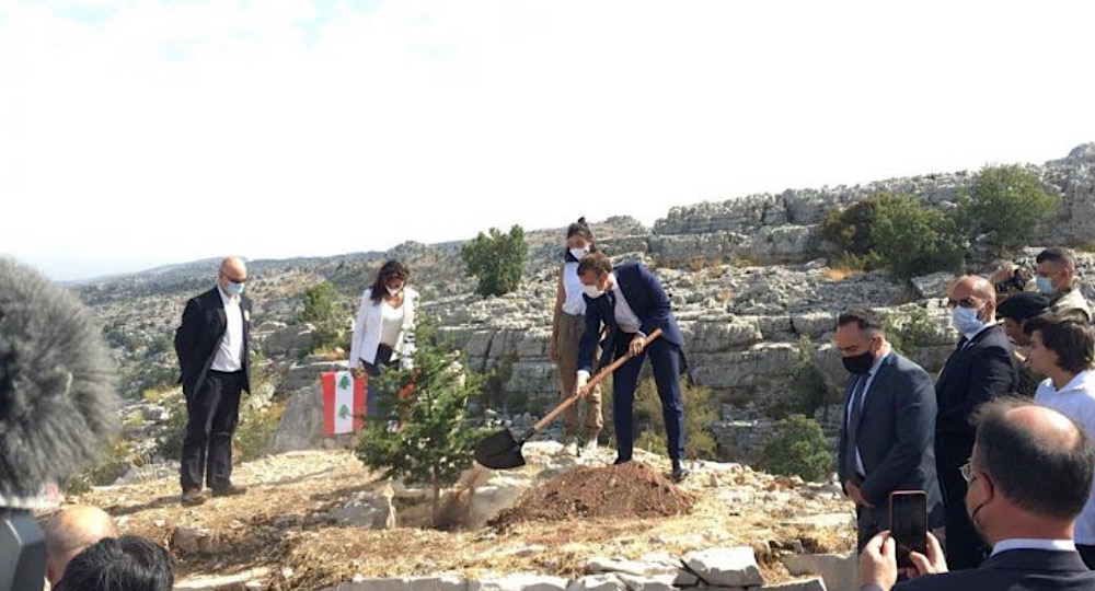 ثم غرس ماكرون ارزة في محمية جاج بمشاركة طلاب لبنانيين وخاطبهم قائلاً: “اعتمد عليكم”.