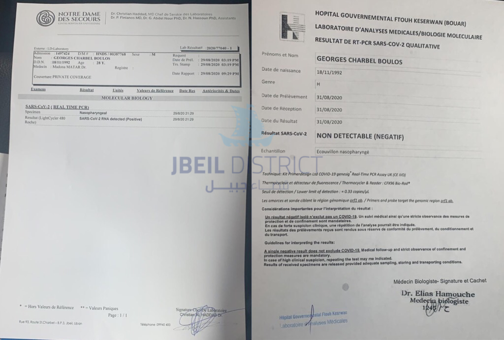 علم موقع ” قضاء جبيل ” انه بعد ان جاءت فحوصات ال PCR لشاب من بلدة حصارات في قضاء جبيل ايجابية ،اعاد الشاب فحوصاتة لتتبيّن انها سلبية اي انه ليس مصاباً بكورونا.