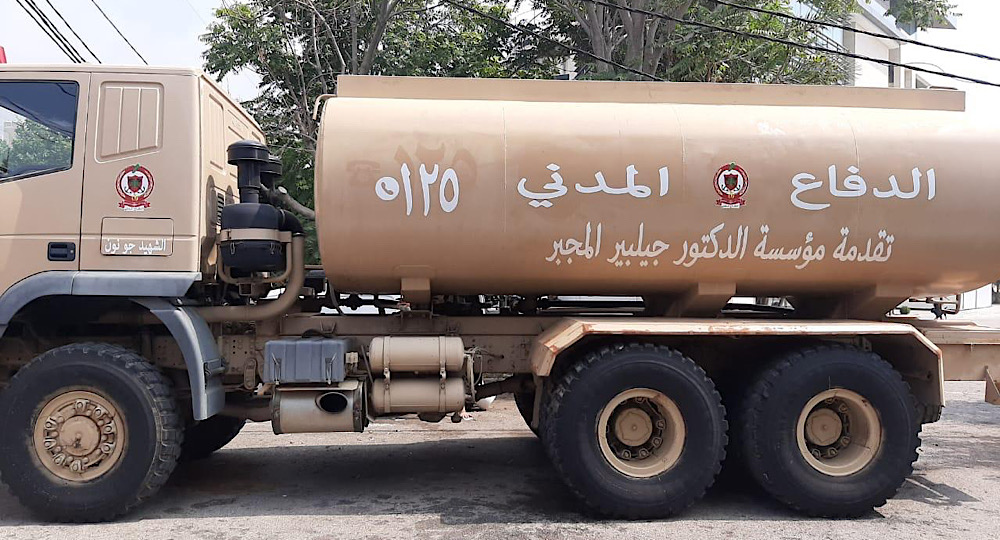 تقديراً منها لما يبذله عناصر الدفاع المدني من جهود وما أظهروه من كفاءة في كافة المهمات التي نفذوها لا سيّما في موقع الانفجار في مرفأ بيروت بالتوازي مع ما يقومون به من عمليات يومية في مجالات الإطفاء والإنقاذ والاسعاف، قدمت مؤسسة الدكتور جيلبير المجبر صهريجاً لتغذية سيارة الإطفاء بالمياه ليضاف الى الآليات الأخرى التي سبق ان قدمتها المؤسسة لمراكز الدفاع المدني عامة ومركز جبيل على وجه التحديد.