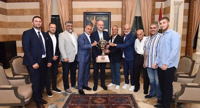 استقبل وزير الداخلية والبلديات القاضي بسام مولوي، في مكتبه بالوزارة، وفدا من الهيئة الادارية لنادي النجمة برئاسة رئيس النادي مازن زعني الذي سلمه كأس الدوري اللبناني لكرة القدم للعام ٢٠٢٤، بعد الفوز الذي احرزه نادي النجمة يوم الأحد الفائت.
