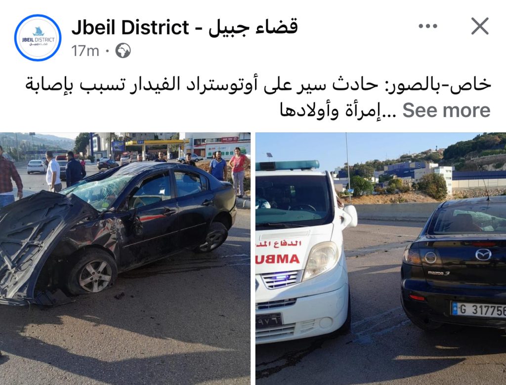 أبرز العناوينخاص-حادث سير على أوتوستراد الفيدار تسبب بإصابة إمرأة وأولادها خاص الموقعخاص-حادث سير على أوتوستراد الفيدار تسبب بإصابة إمرأة وأولادها08:42 2024 ,November 1002101 أفاد مراسل موقع “قضاء جبيل”ان عناصر الدفاع المدني نقلوا إمرأة وولديها إلى مستشفى سيدة ماريتيم في جبيل، أُصيبوا جرّاء تعرّضهم لحادث سير وقع على المسلك الغربي لأوتوستراد الفيدار- جبيل”. FacebookTwitterPinterestWhatsAppTelegram الخبر السابقخاص-بالصور:إجتماع قيادي للتيار في جبيل لمتابعة التطورات السياسية والشؤون الداخليةالخبر التاليأمطار رعدية تنتظرنا… إحتمال سيول وتساقط برد- إعلان - - إعلان - - إعلانات - - إعلانات - الأكثر قراءةمأساة مؤلمة… ميشال جثّة داخل منزله! 11:38 2025 ,December 4 أوَّل معجزة تُسَجَّل بعد زيارة البابا ضريح مار شربل: رَنَّ هاتف الطبيب وصوتُ القديس يُعلِنُ الأعجوبة 15:24 2025 ,December 4 جريمة مروّعة نفّذها سوريّان… ودعوات لضبط النفس 12:02 2025 ,December 4 خاص-منشور للزميل عبدو متى يثير الجدل حول حضور سليم صفير لقاء الشبيبة في بكركي! 23:24 2025 ,December 1 المزيد- إعلانات - - إعلانات - - إعلان - - إعلان -