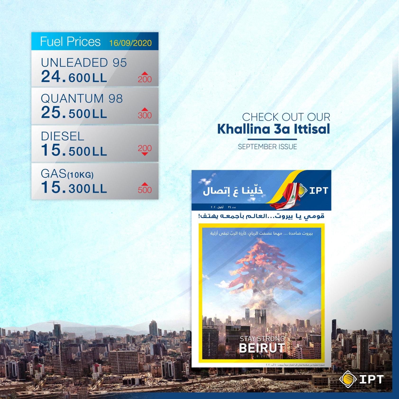 سجل سعر صفيحتي البنزين ارتفاعاً ملحوظاً صباح اليوم 95 أوكتان 200 ليرة و98 أوكتان 300 ليرة والغاز 500 ليرة في حين انخفض سعر المازوت 200 ليرة.