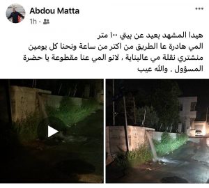 كتب الزميل الإعلامي عبدو متى على صفحته عبر الفايسبوك قائلاً: هيدا المشهد بعيد عن بيتي ١٠٠ متر