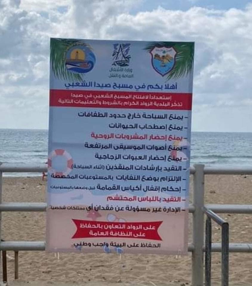 رفعت بلدية صيدا لافتة كبيرة عند مدخل شاطئ مسبح صيدا الشعبي وقبيل افتتاح الموسم، ذكرت فيها رواد الشاطئ بمجموعة من الشروط والارشادات، من بينها التقيد باللباس المحتشم ومنع إدخال المشروبات الروحية.