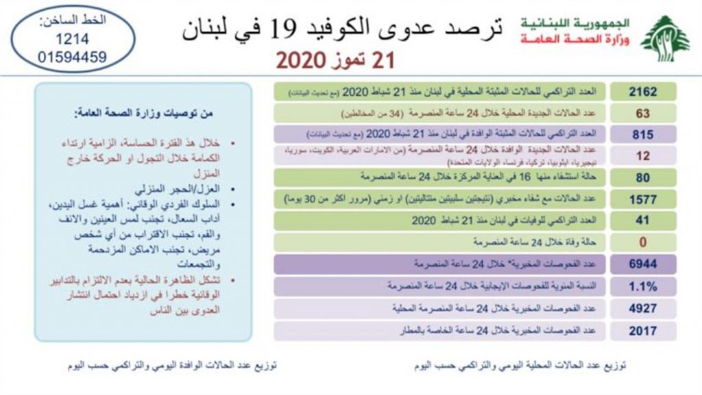 من جهة أخرى، قال: “جميع الوافدين من دول لا تعتمد pcr سيحجرون في فنادق مخصصة بأسعار مدروسة بالتنسيق مع وزير السياحة الى حين صدور الـpcr الذي يخضعون له عند وصولهم، مضيفًا: “بالنسبة لكورونا نحن على باب المرحلة الرابعة وسنعمل بجهد لتحسين الوضع والعودة إلى المرحلة الثالثة”.