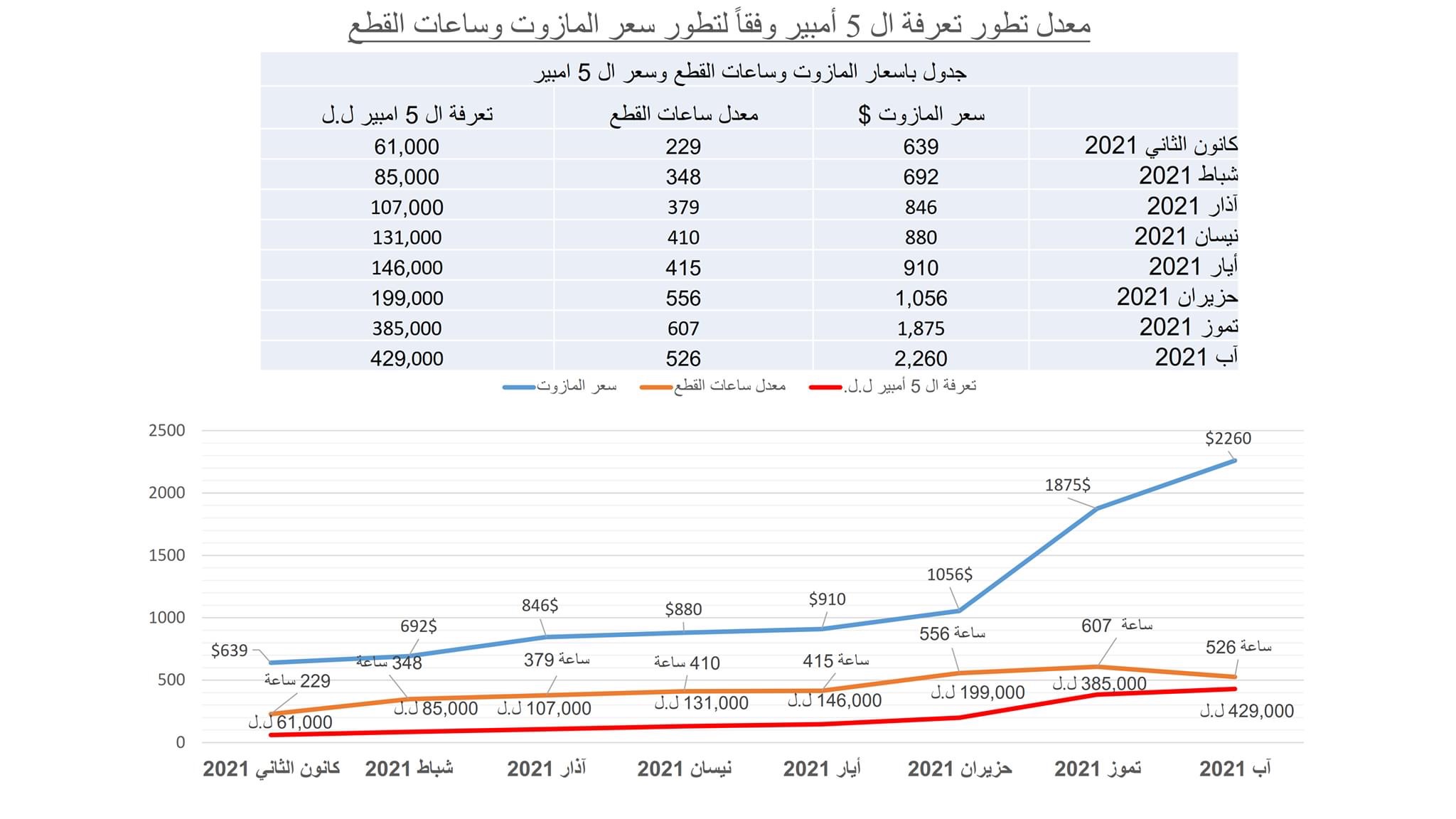 معدل تعرفة 5 امبير بالساعة 815 ل.ل