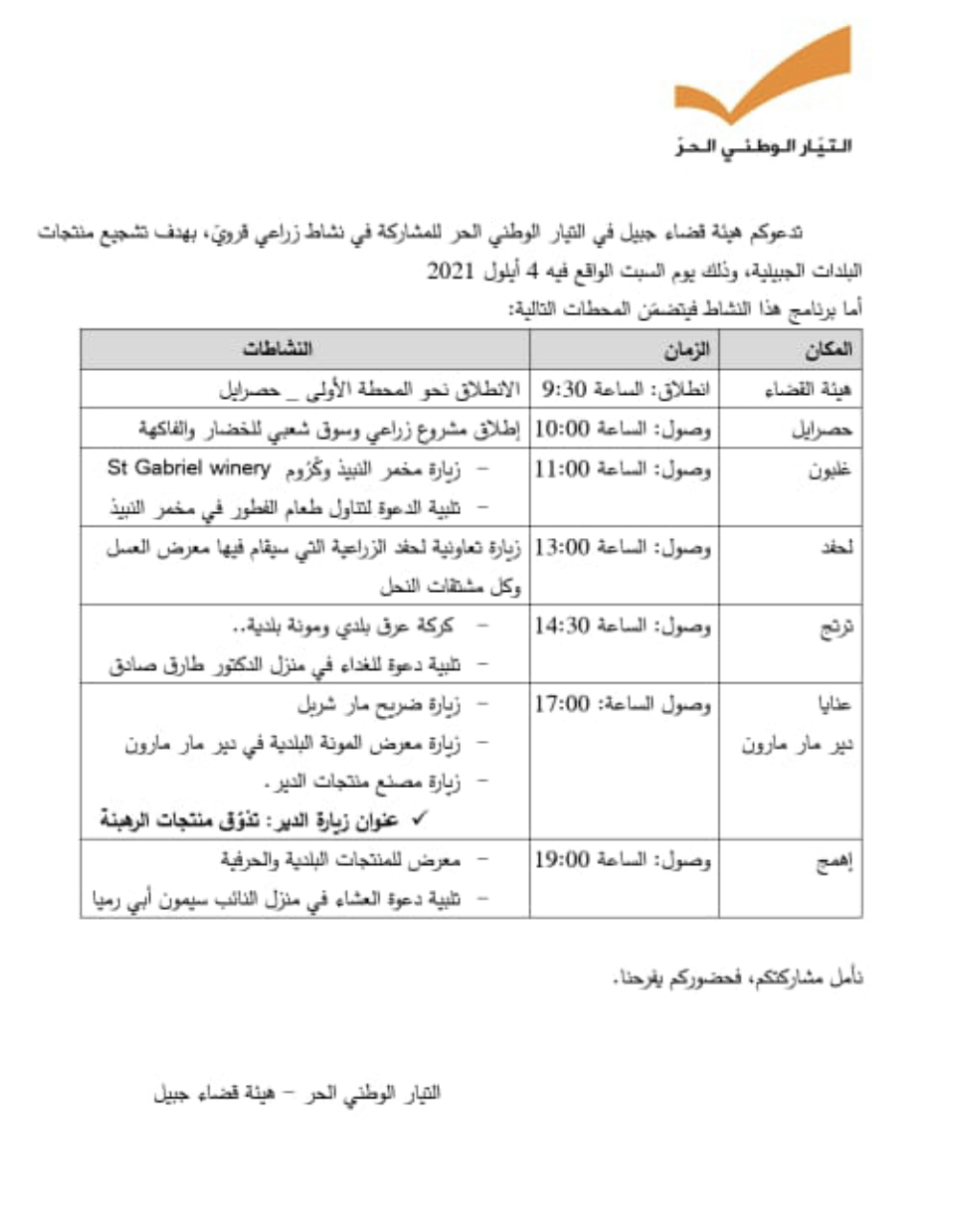 السبت ٢٥ أيلول الساعة ٤… ورح اتواصل مع بلدية جبيل لتأمين يلي بيلزم… وكل حدا قادر يأمن تغطية طبية متل الصليب الأحمر ومواصلات ومياه وتغطية اعلامية وكل شي بيخطر عبالكن… احكوني…