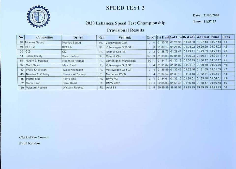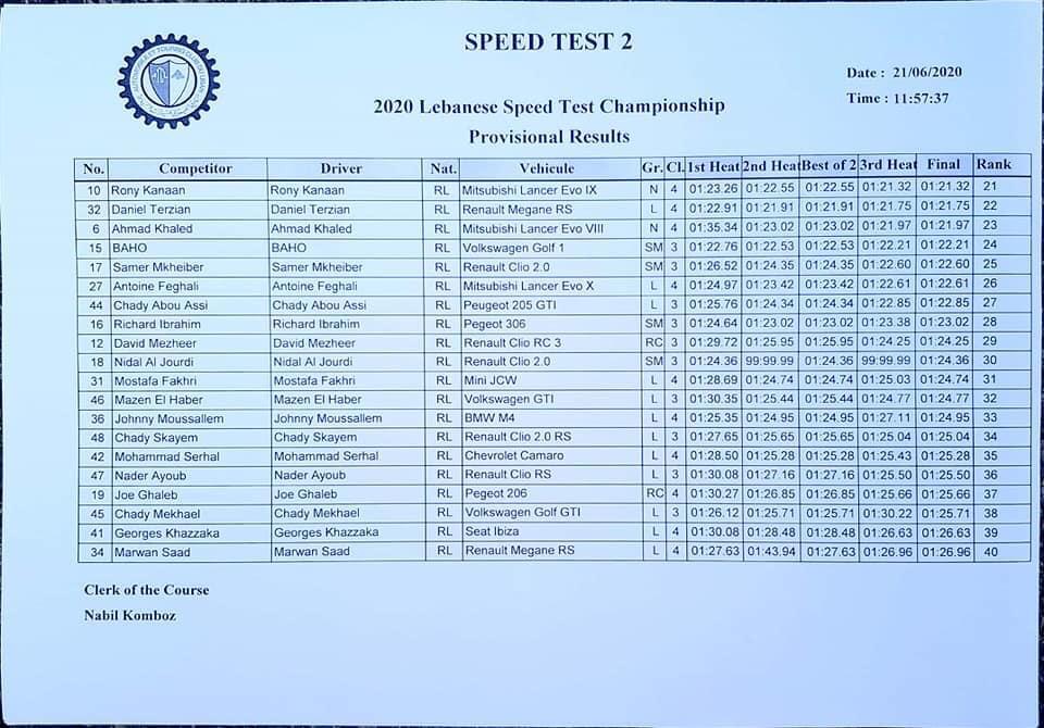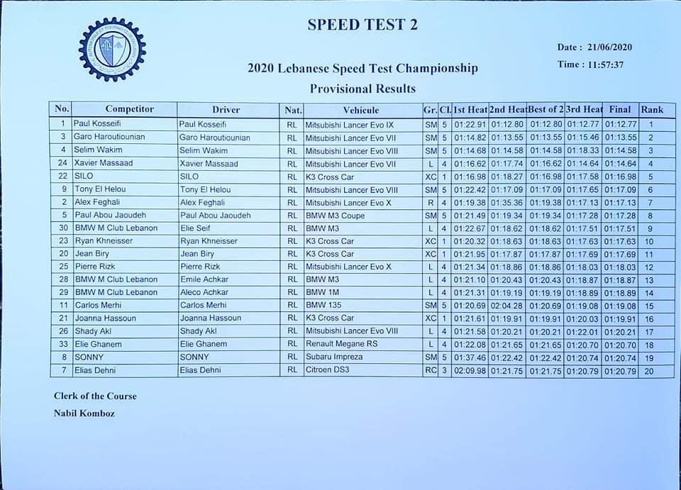 أجريت اليوم الجولة الثانية لسباق السرعة الاول “سبيد تست”، من تنظيم ATCL في منطقة رومية حيث حلّ ابن بلدة عمشيت السائق بول القصيفي أولا والسائق اللبناني، الأرمني الأصل غارو هاروتيونيان ثانيا أما المركز الثالث فكان من نصيب السائق سليم واكيم، وقد شارك في السباق ٥١ متبارياً .