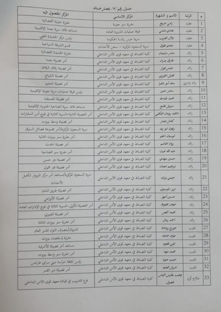 أصدرت المديرية العامة لقوى الأمن الداخلي قراراً بتشكيلات جديدة شملت نقل وتعيين ضباط في مراكز مختلفة.