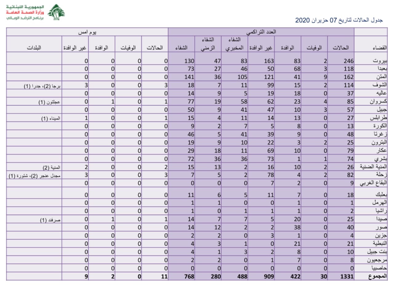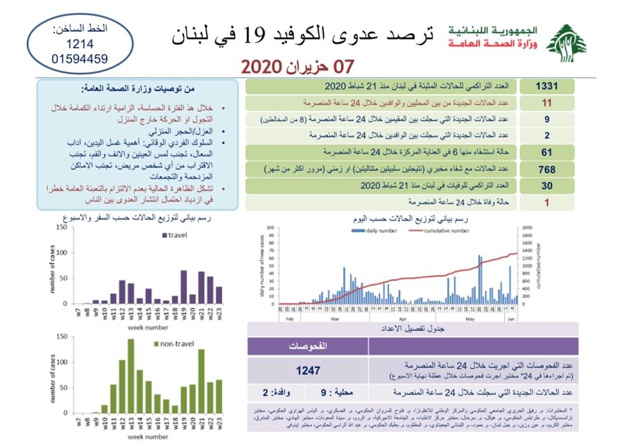 كما ذكرت بأنها “الجهة الوحيدة المخولة إصدار بيانات عن الواقع والمعطيات الصحية المتعلقة بفيروس كورونا وأعداد المرضى والمتعافين والحالات المشتبه بها، وذلك وفق تقرير من رئيس طبابة القضاء”، آملة “من جميع الأهل عدم الإنجرار وراء أي خبر لا يصدر عن هذه الوحدة”، وناصحة إياهم “الاستمرار بالالتزام التام بعدم الاختلاط وتطبيق كل التعليمات الصادرة عن رئاسة مجلس الوزراء ووزارة الصحة العامة لتفادي أي إصابة أو ضرر محتم”.